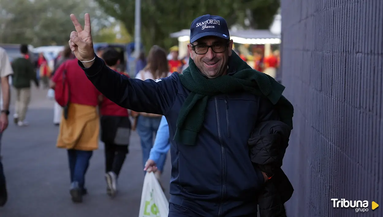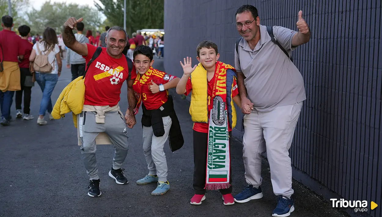 Desde León también se dejó ver una buena representación de aficionados, varios de ellos con banderas, tambores... Estos últimos confesaban que les hubiese gustado ver a Lamine Yamal o Dani Olmo, ambos baja por lesión. "Veníanos con la ilusión de ver a Olmo o a Yamal en directo...", añadió. Otro simpatizante, que venía de Ávila, quería ver a Ferran, pero se conformaba con ver ascender al Real Ávila, ya que, para él, sí o sí, el Mundial será para España: "Vamos a ganarlo. Somos favoritos".