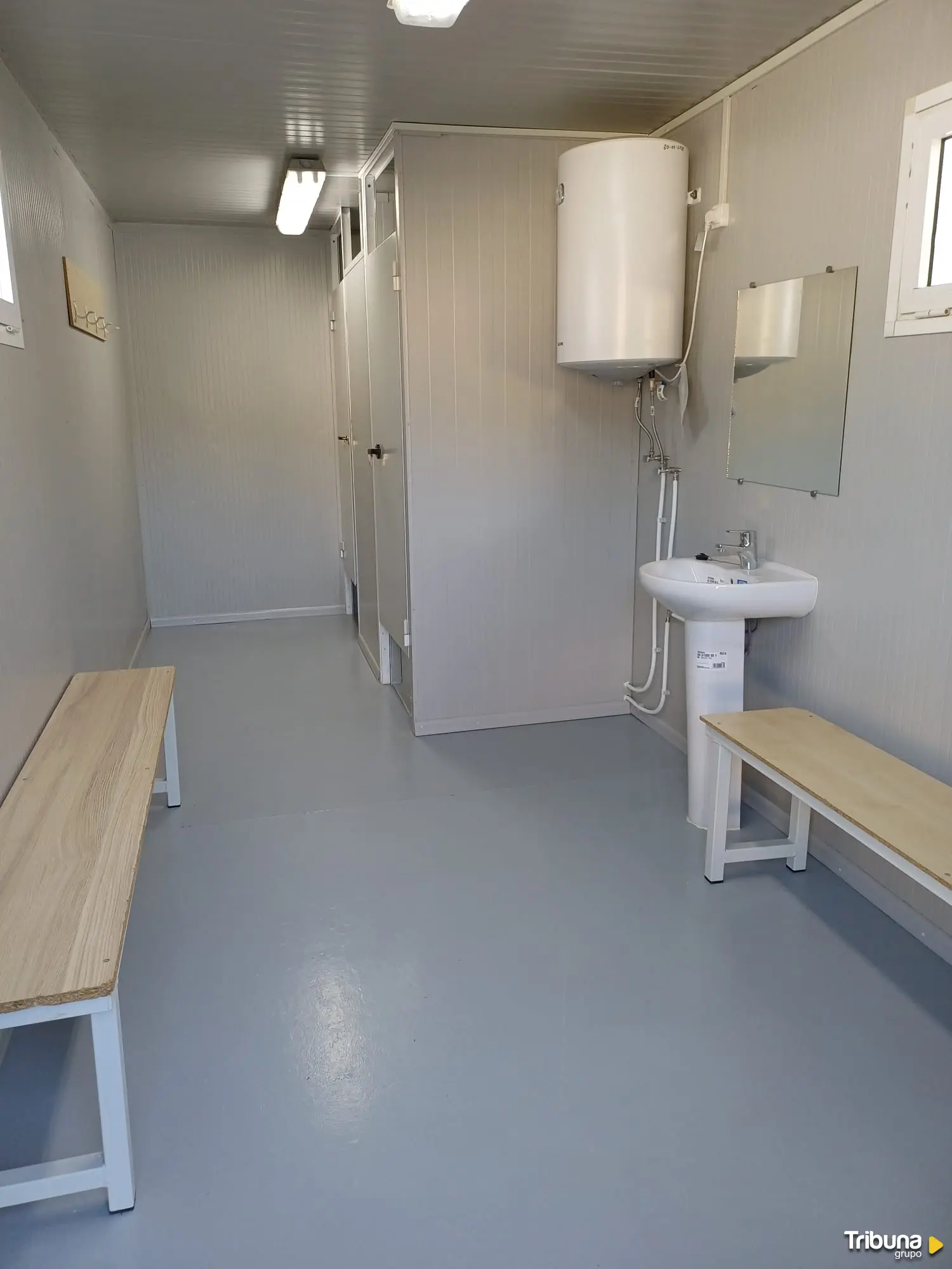 Entre los trabajos realizados figura la construcción de nuevos vestuarios y aseos, distribuidos en dos módulos independientes de aproximadamente 10 metros cuadrados cada uno. El espacio destinado a mujeres dispone de vestuario y aseo, mientras que el módulo masculino cuenta igualmente con vestuario y un aseo. Ambos están dotados de duchas y agua caliente, una actuación que ha supuesto una inversión municipal de 13.000 euros más IVA.