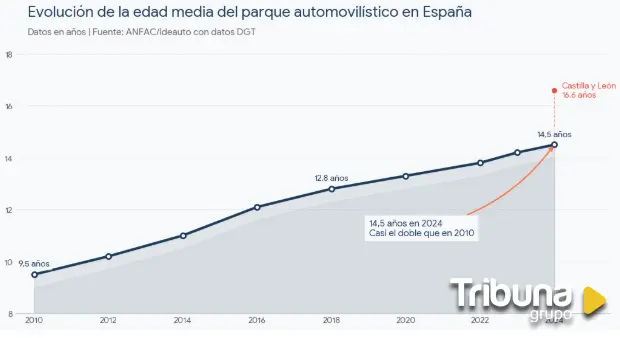 Castilla y León es la segunda comunidad con el parque más envejecido del país (16,6 años), solo superada por Ceuta y Melilla. Ávila ocupa el sexto puesto regional con 16,7 años, por detrás de Zamora (17,3), León (17,2), Palencia (17,1), Soria (17) y Salamanca (16,8).